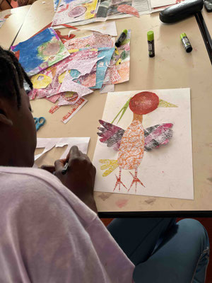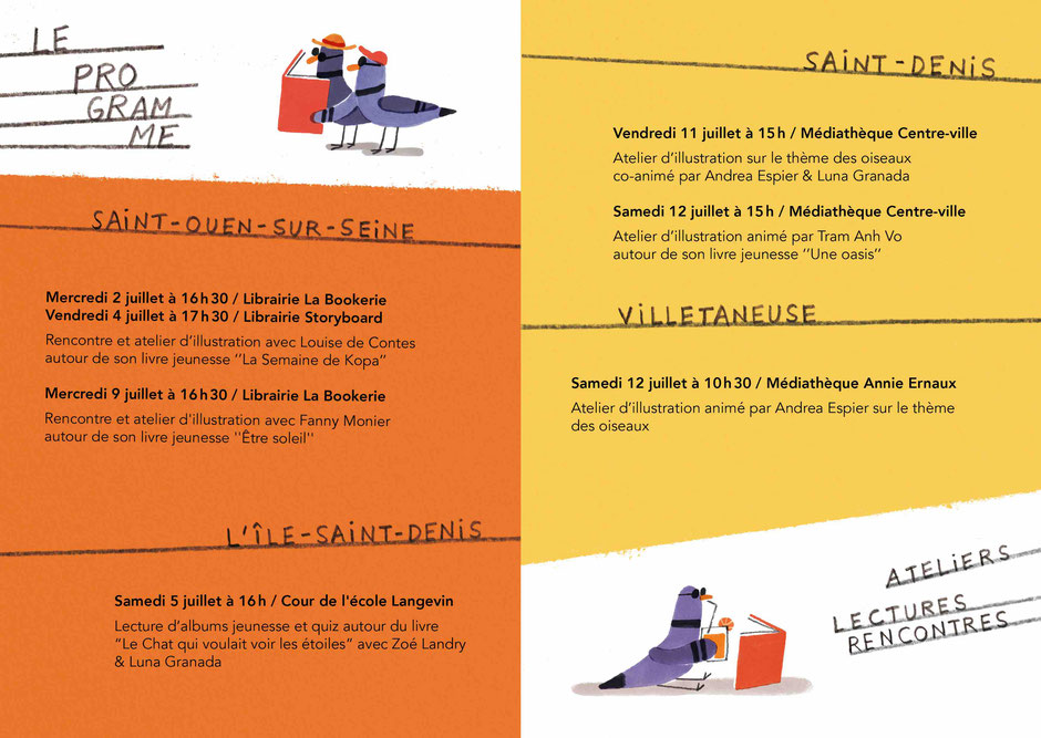 Rencontre et atelier sur le thème des oiseaux avec Andrea Espier et Luna Granada, à la Médiathèque Centre-ville de Saint-Denis (juillet 2025)