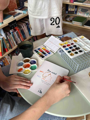 Rencontre et atelier sur le thème des animaux avec Fanny Monier, autour de son livre Être soleil, à la librairie La Bookerie à Saint-Ouen (juillet 2025)