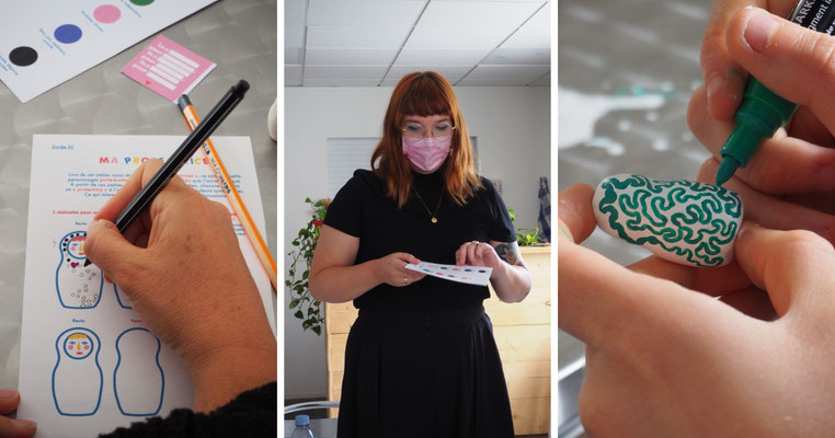 Les ateliers proposent aux participantes de faire une pause pour se consacrer à ce qu'elles n'ont pas forcément la possibilité de faire au quotidien : souffler, échanger, chanter, créer, se projeter, rêver !