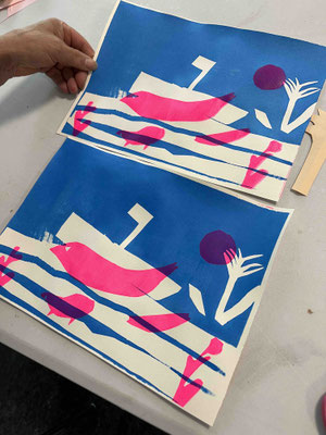 Atelier sérigraphie animé par Zoé Landry à la maison de quartier Pierre Sémard (juillet 2023)