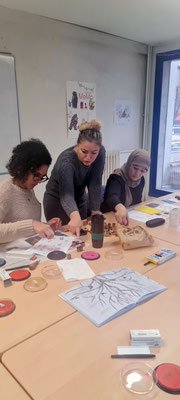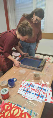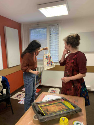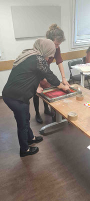 Atelier sérigraphie animé par Zoé Landry à la maison de quartier Franc-Moisin (novembre 2023)