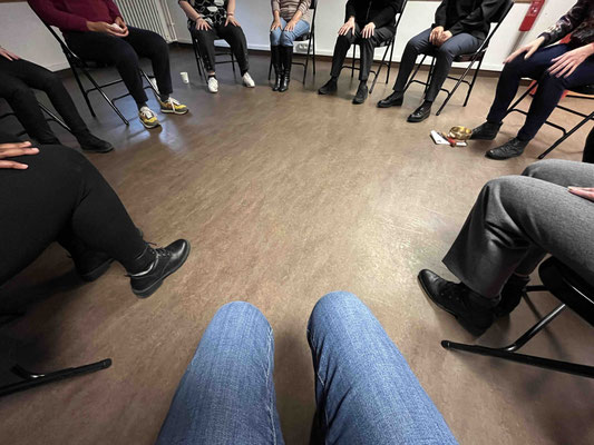Atelier "Voix et bien-être" animé par Cécile Dumoutier à la maison de quartier Franc-Moisin (décembre 2023)